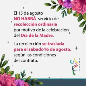Este 15 de agosto de 2025, el Día de la Madre en Belén se celebrará con una misa en honor a todas las mamás y con cambios en la recolección de residuos ordinarios.