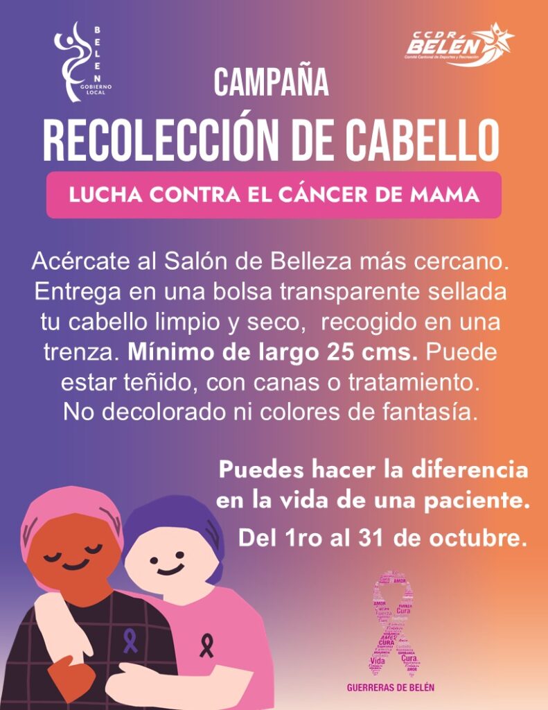 La campaña estará abierta hasta el 30 de octubre, organizada por el colectivo Guerreras de Belén y cuenta con el apoyo de la Municipalidad y FUNDESO, organización que brinda acompañamiento a pacientes y sobrevivientes de cáncer de mama.